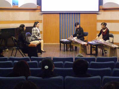 2009年3月26日—27日,日本东京艺术大学代表团一行5人来访,该代表团此次来访是就《东亚艺术宣言—日中韩姐妹院校共同合作事业》“日本音乐暑期讲座”进行追踪辅助教学。来访期间,代表团成员植村幸生教授、安藤政輝教授、安藤珠希老师在小音乐厅举行了日本筝演奏公开课、日本音乐交流研讨会以及日本筝讲演音乐会。最后,代表团成员与张显平副院长、民乐系系主任王建民教授就此次交流活动总结经验并就今后两校开展交流合作事业进行了洽谈。