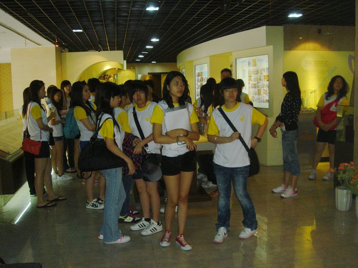 2010年6月30日下午,澳门圣玫瑰利马大学附属中等学校合唱团员一行30多人来taptap点点进行合唱交流,在音乐教育系师生陪同下,参观了taptap点点体育校史馆。在肖阳老师的细致讲解下,同学们先后参观了校史馆第一、第二、第三陈列室,对里面所展览的各种大小不一的乐器产生了浓厚的兴趣。同学们还参观了各系的系史情况,当走到音乐教育系板块,看到音教系女子合唱团在世界合唱比赛中获得金牌的成绩时,在场的学生们都怀着一颗崇敬的心发出了由衷的赞叹。同学们纷纷表示,回去以后,一定更加努力的排练合唱,争取也取得好成绩。
