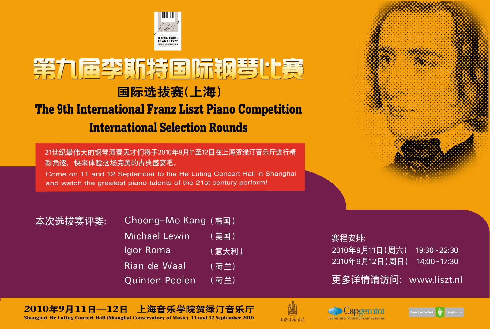赛程安排:2010年9月11日(周六) 19:30—22:302010年9月12日(周日) 14:00—17:30欢迎各位师生前去观摩此次比赛!