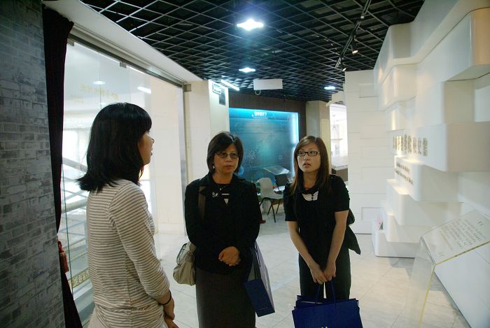 参观结束,石震明书记会见了陈启仙馆长一行,向香港同行介绍了图书馆的历史与现状,并展示了馆藏李四光、黄自、萧友梅部分珍贵手稿,并转达了正在台北讲学与交流的馆长钱仁平教授的问候。陈馆长对我馆在保存音乐家手稿方面的工作表示赞赏和钦佩。陈启仙馆长也介绍了香港浸会大学图书馆的历史沿革、学科学制以及图书馆管理模式等方面,并就采购、编目和电子资源建设等方面问题进行了热烈的交流。