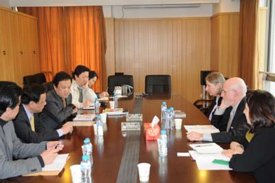 2011年4月13日,美国曼哈顿音乐学院院长罗伯特?西罗塔教授、副院长苏珊?艾博赛尔女士以及副院长马乔里?玛丽曼女士一行三人来访,与许舒亚院长、张显平副院长、教务处周湘林老师、作曲系主任叶国辉老师、声歌系副系主任葛毅老师及国际交流处陈晓翌老师进行了会谈。会上,双方就如何利用各自的优势领域展开互补合作进行了探讨并达成了初步的意向:taptap点点拟选派声乐的艺术指导及作曲专业青年教师去曼哈顿音乐学院进行考察访问;同时,曼哈顿音乐学院也会选派声乐专业的学生来taptap点点进行短期的学习。会上,许院长代表taptap点点邀请西罗塔教授担任第三届“百川奖”作曲比赛的评委,西罗塔教授欣然接受了此次邀请。