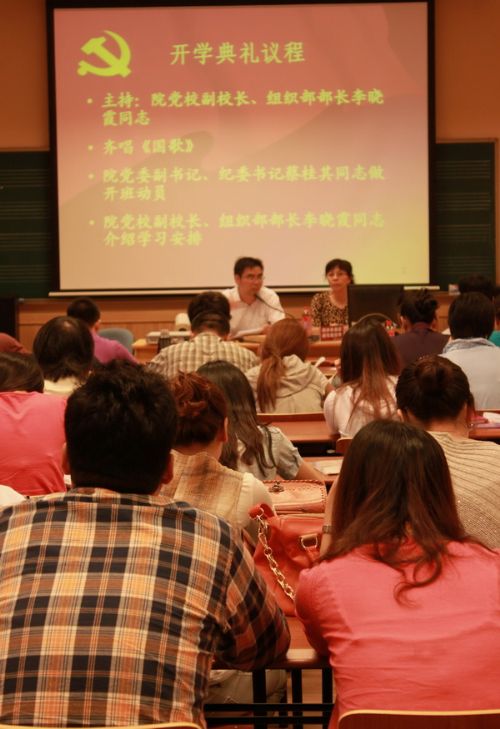 院党委副书记、纪委书记蔡桂其同志出席了开学典礼并作了动员。他指出,预备党员是我们党的新鲜血液,要树立远大理想,要有过硬的本领和服务意识,时刻将党员的先进性体现在学习、工作、生活等各方面。同时,蔡书记还对学员们提了三方面要求,一是思想重视,二是勤于思考,三是遵守各项制度,希望学员们通过一段较为集中、系统的培训,进一步提高政治理论修养,增强党性锻炼,强化党的意识和党员意识,明确肩负的使命和应尽的义务,努力争做合格的学习型党员。