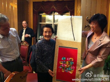 周先生一行受到了武汉市委、市府、市人大、市政协领导以及武汉音乐学院领导的热情接待。武汉市委常委宣传部部长彭丽敏女士代表武汉市领导赠送给周先生一副精致的汉绣:“福”,并衷心祝福周先生重阳节快乐、健康长寿!