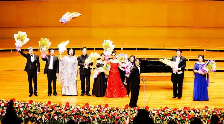 24日上午,周小燕教授在武汉琴台音乐厅举办了声乐大师班,晚上极其成功地举办了“故乡情——周小燕与她的学生们琴台音乐会”,廖昌永、方琼、周正、李秀英、杨光、郭森等歌唱家的精彩演唱,博得了全场观众一阵又一阵潮水般的掌声。
