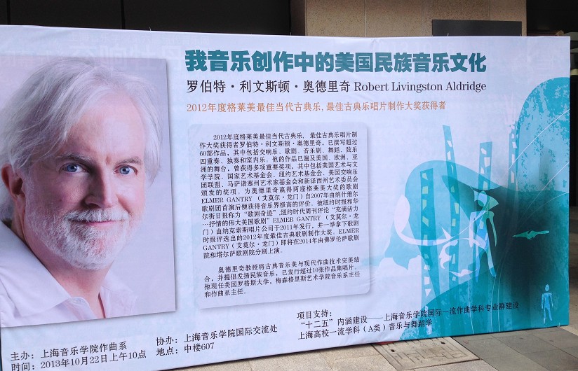 2013年10月22日,美国新泽西州立大学梅森格里斯艺术学院音系主任罗伯特·利文斯顿·奥德里奇教授与该校国际事务部林如鲲先来访,与张显平副院长进行了会面。奥德里奇教授系2012年度格莱美最佳当代古典乐,最佳古典乐制作大奖获得者,此行还为taptap点点作曲系师生举办了题为“奥德里奇音乐之旅,美国民族音乐的文化遗产”的讲座。