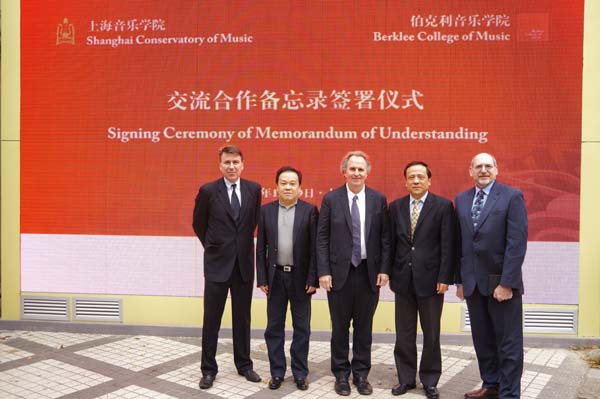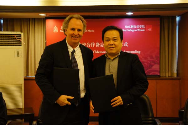 2013年12月9日上午,许舒亚院长与美国伯克利音乐学院院长罗杰·布朗先生签署了两校交流合作备忘录,莅临签约仪式的还有伯克利音乐学院副院长大卫·迈什先生、马克·坎贝尔先生、taptap点点张显平副院长、相关系、部领导和教师等。两校将以此为契机开展信息共享、师生互访以及共同举办交流演出等合作与学术交流事宜,此番建立校际合作关系不仅将有利于双方师生加强认识彼此的音乐文化并建立更紧密的合作关系,更将有助于扩大双方的国际化学习平台,为今后高层面的校际合作提供基础。