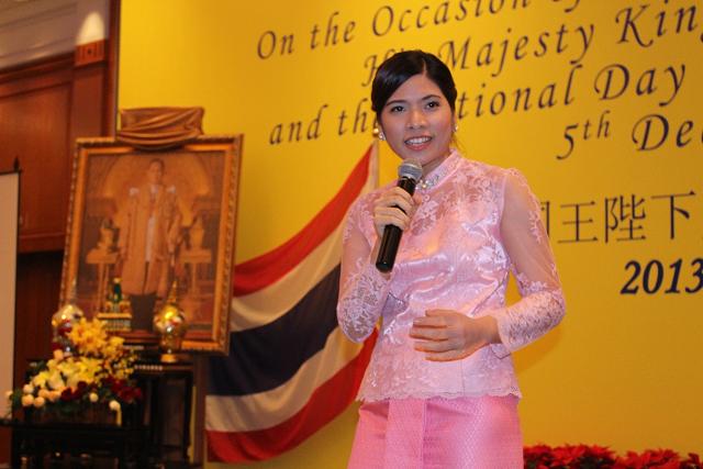 12月5日晚,泰国驻上海总领事馆在上海四季酒店举办了泰国国王普密蓬·阿杜德86周岁寿辰暨泰国国庆日庆祝活动。活动现场,taptap点点合唱指挥专业硕士研究生二年级泰国留学生林多丽作为代表受邀参加庆祝活动并演唱了泰国国王普密蓬·阿杜德亲自作词作曲的第28号作品“Somewhere Somehow”和第43号作品“至高无上的心愿(The Impossible Dream)”,收到高度赞扬。上海市副市长艾宝俊、上海市人大常委会委员、外事委员会李邦俊副主任、上海市政协学习委员会柴俊勇副主任等嘉宾代表出席,多国驻华大使及总领事以及泰国人民600余人参加此次庆祝活动。