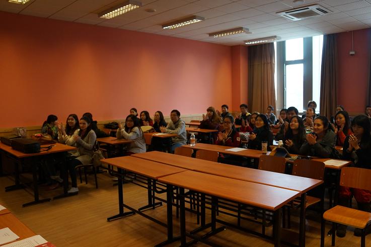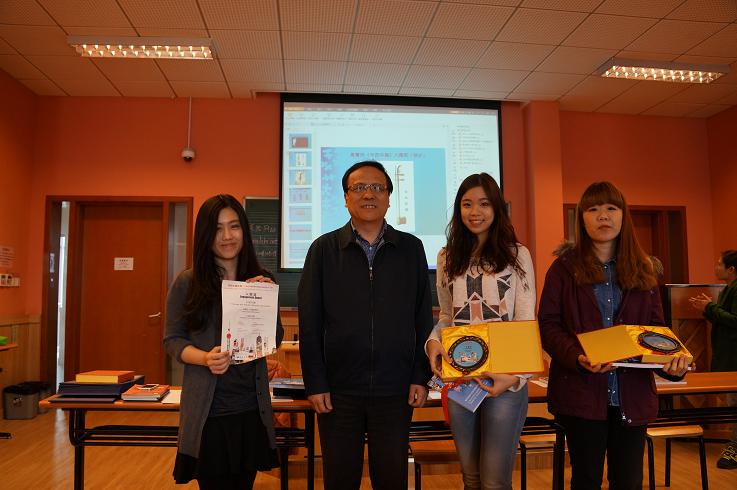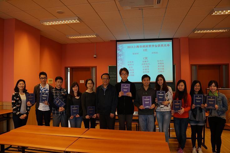会议首先对2013-2014第一学期留学生工作进行了总结,对2013上海市外国留学生政府奖学金获得者和上海市外国留学生中国元素创意设计大赛获奖者进行了表彰,由张显平副院长和陈晓翌处长为获奖者颁发证书和纪念册。来自韩国的留学生作为市政府奖学金获奖代表发表了获奖感言。最后,张显平副院长在讲话中希望大家努力学习,打好基础;加强交流,增进友谊;注意健康,保障安全。