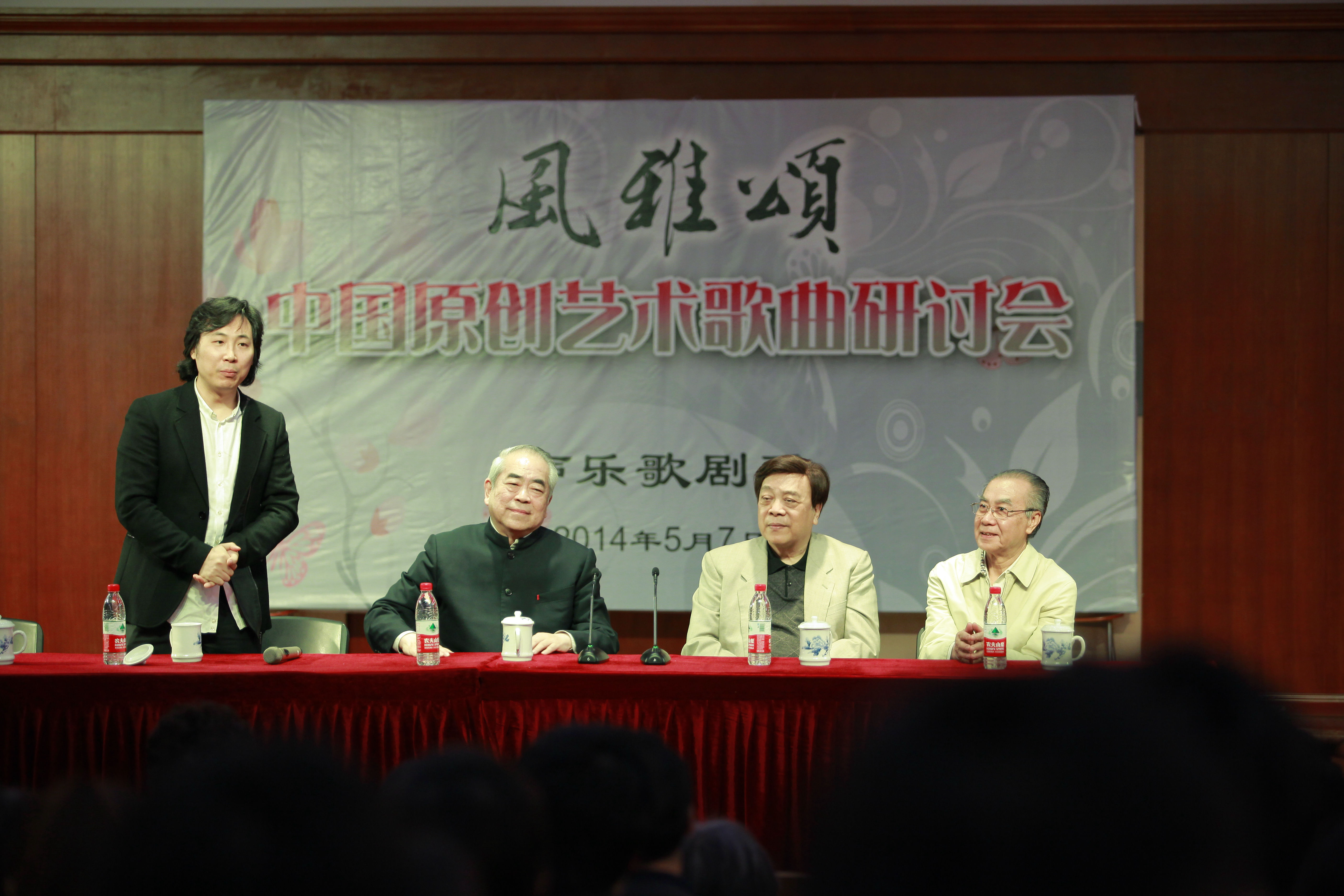 5月7日上午,我系组织召开的“风雅颂——中国原创艺术歌曲研讨会”在学术厅进行。研讨会由廖昌永副院长主持,著名画家、学者范曾先生,著名电视节目主持人赵忠祥先生和著名播音指导方明先生到会。三位专家与在场的师生一起交流了他们研习中国文化的心得,范曾先生谈了他对中国传统诗歌的理解、认识,以及对中国艺术歌曲创作现状的评价,赵忠祥先生号召青年学子要十分重视对中国传统文化的继承和发扬,方明先生还当场背诵了范仲淹的《登岳阳楼记》。三个人的发言均博得了在场师生们的热烈掌声,觉得获益匪浅。