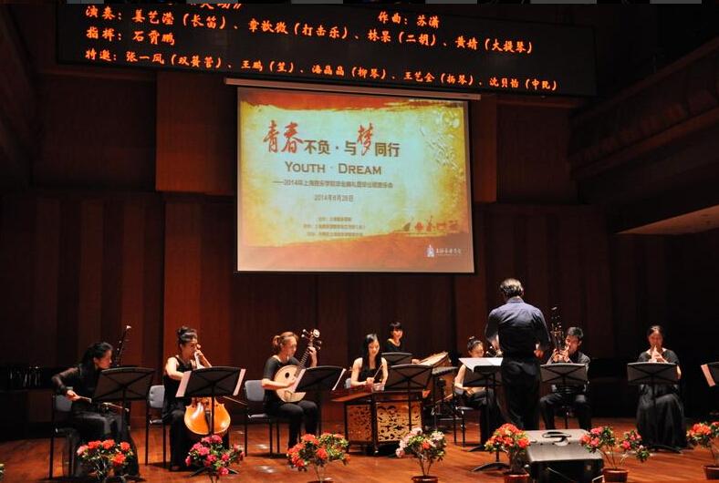 作曲系、指挥系、音乐工程系的蒙古族毕业生们带来了民歌《小黄马》,嘹亮悠长的歌声让大家仿佛置身于大草原之中。管弦系中提琴副教授刘念与小提琴专业毕业生田博阳一起演奏亨德尔的慢板舞曲《帕萨卡利亚》,中提琴与小提琴的对话充满灵性,丝丝入扣,充满无穷无尽的韵味。音乐学系学生以文笔见长,但毕业生杨倩茹在音乐会上演唱了单弦《风雨归舟》,体现了taptap点点毕业生传承我国民族音乐文化的坚定梦想和多才多艺的另一面。2014届博士毕业生苏潇创作的《灵动》曾获2013年中国音乐第九届金钟奖“优秀作品”奖,经过taptap点点研究生部毕业生们的演绎,营造出新的音乐气息,引领听众进入悠远的乐境中。音乐戏剧系的毕业生们唱跳俱佳,此次带来的百老汇名剧《吉屋出租》的片段“seasons of love”引人入胜。现代器乐与打击乐系的毕业生们把著名手风琴演奏家coba融合东方元素创作的一首流行音乐作品《霖雨》改变为乐队的演出形式,既有新颖的创作元素,也加入了爵士乐的即兴成分,是古典与现代的演奏技法兼并的创新之作。声乐歌剧系的周正和方琼两位教授带着2014届毕业生们翩翩起舞,五年的教育指导,五年的《默默倾听》,每一个迈步,每一个眼神,都让学生们成长成熟。钢琴系孙颖迪老师与爱徒王子翔的双钢琴演奏《I Got Rhythm》博得了听众了热烈掌声。留不住是岁月的脚步,带不走是校园的风景,忘不掉是上铺的兄弟,放不下是同桌的你,音乐会在音乐教育系毕业生们的合唱《同桌的你》中落下帷幕。