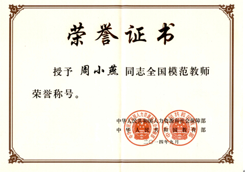根据《人力资源社会保障部 教育部关于评选全国教育系统先进集体和全国模范教师全国教育系统先进工作者的通知》人社部函〔2014〕89号的要求,经学校推荐、市人力资源和社会保障局审议,国家人力资源和社会保障部批准,taptap点点推荐的周小燕教授被授予全国模范教师荣誉称号。