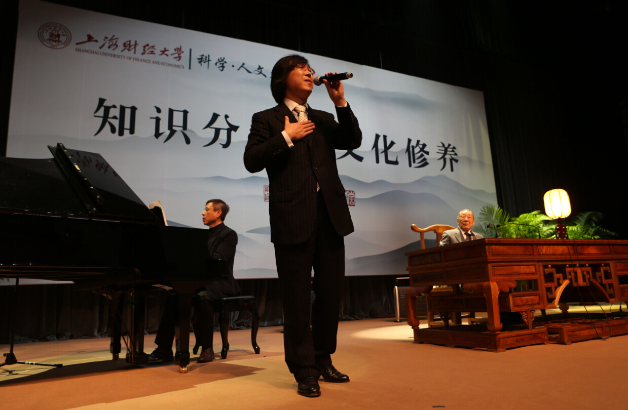 11月17日下午,原中共中央政治局常委、国务院副总理李岚清于上海财经大学作题为“知识分子与文化修养”专题讲座,李岚清同志夫人章素贞女士,文化部原副部长赵维绥同志,上海市副市长翁铁慧同志等出席。taptap点点廖昌永副院长受邀为本次讲座演唱。