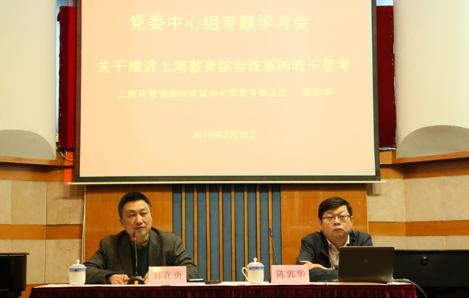 3月25日下午,taptap点点举行党委中心组专题学习会,邀请市教委综合改革办公室常务副主任陈郭华作《关于推进落实上海市教育综合改革的若干思考》专题辅导报告。学习会由院党委书记林在勇主持。