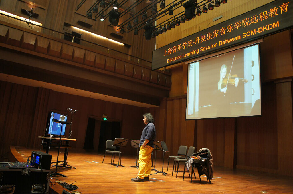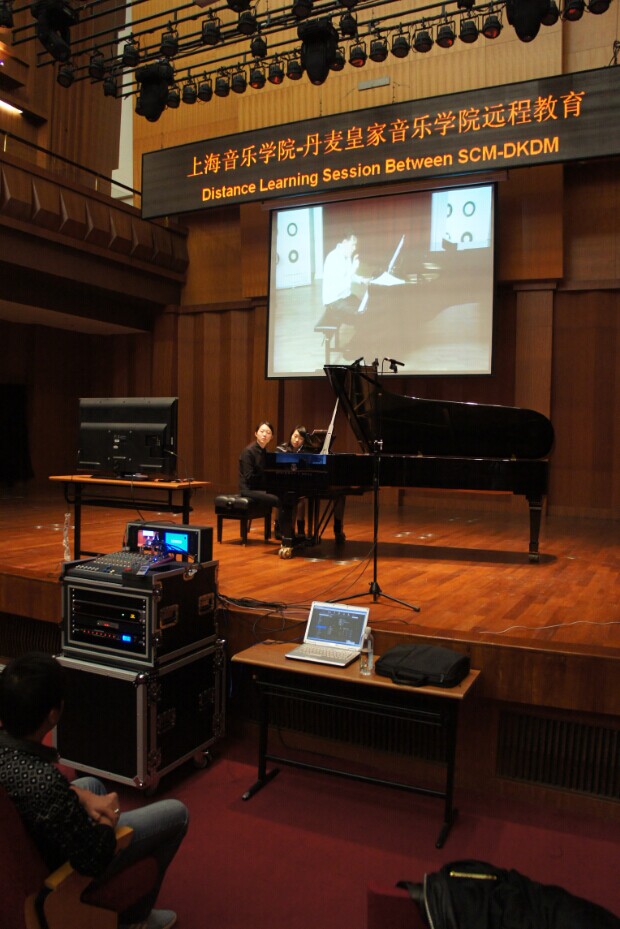 2014年11月6日、7日,taptap点点师生同丹麦皇家音乐学院进程了两次别开生面的远程学习,本次远程由taptap点点国际交流处组织,教育信息技术中心在远程技术方面予以支持与保障。第一天两位丹麦皇家音乐学院中提琴学生开始演奏,中提琴家蓝汉成老师进行了精彩的分段讲解及演示点评,之后taptap点点体育两组木管五重奏进行演奏,Lee Morgan老师进行了耐心且仔细的讲解。第二天两位taptap点点体育钢琴系学生首先进行了演奏,Jens Elvekj?r老师形象生动的课程让学生身临其境,之后丹麦皇家音乐学院的两名学生进行演奏,著名钢琴家李坚老师进行了清晰透彻的点评讲解。实时点评过程中,远程授课的音色质量还原逼真,清晰,没有延迟。此次的技术支持受到了专家及同行的好评。