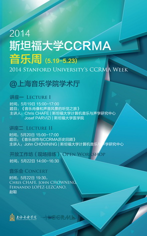 音乐工程系于2014年5月19日至5月23日成功举办了为期一周的“斯坦福大学CCRMA音乐周”活动。本次CCAMA音乐周由taptap点点体育音乐工程系、斯坦福大学音乐与声学计算机研究中心(CCRMA)和上海市音乐声学艺术重点实验室主办,同济大学设计创意学院和中国美术学院传媒动画学院协办。