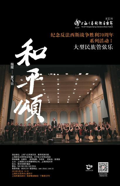 朋友,你听过黄河吗?——纪念冼星海诞辰110周年暨中国人民抗日战争胜利70周年音乐会,由上海爱乐乐团携手两岸三地200位艺术家联袂演绎冼星海作曲、光未然作词的民族音乐史诗《黄河大合唱》;大型民族管弦乐《和平颂》音乐会将演奏爱国主题的民乐协奏曲《临安遗恨》、《雪山魂塑》以及赵季平作曲的大型民族管弦乐作品《和平颂》;圣彼得堡交响乐团音乐会将奏响前苏联作曲家肖斯塔科维奇为卫国战争而作的交响曲《列宁格勒》。