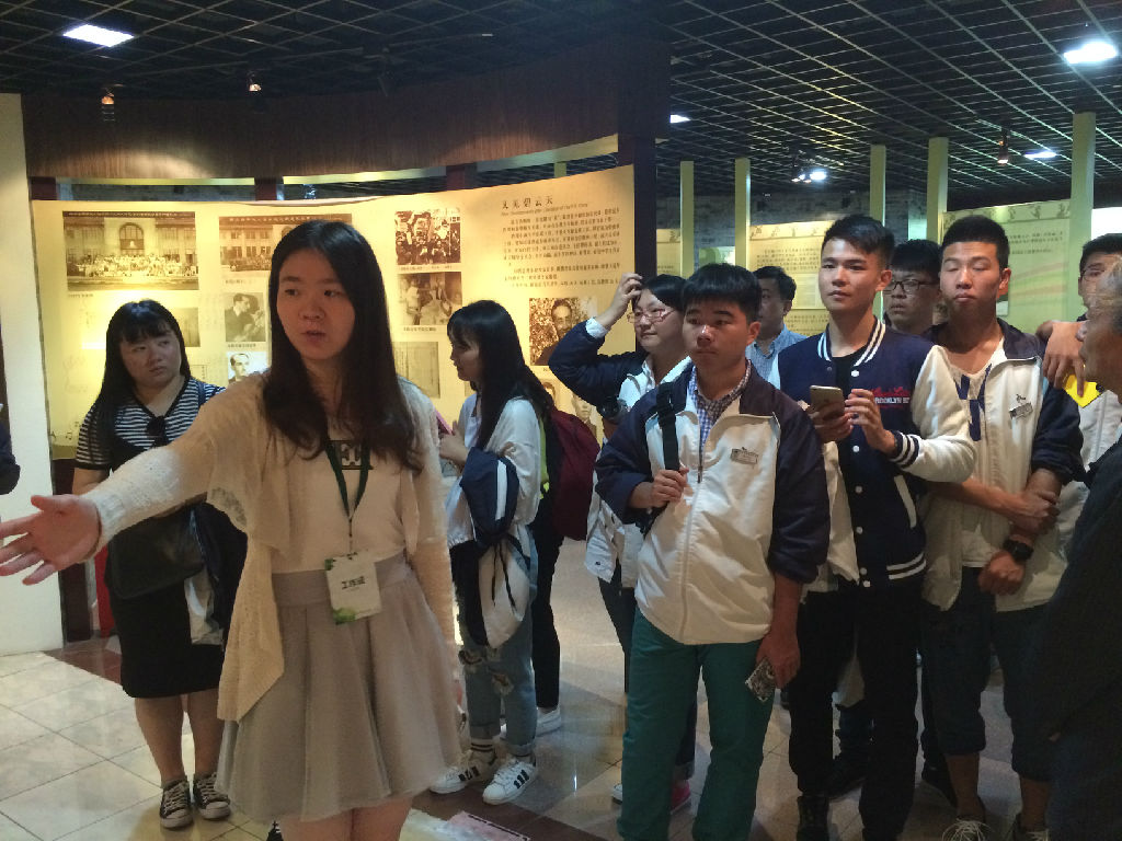 图1志愿者虞芝琳(音乐工程系,2014级)提供校史讲解
