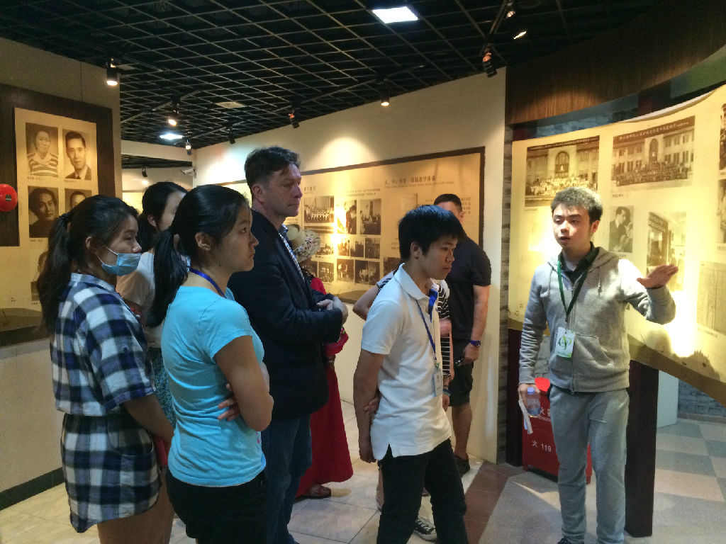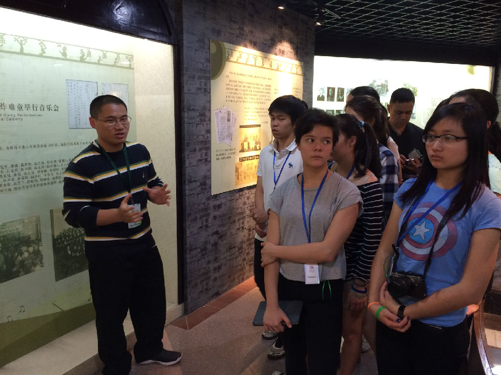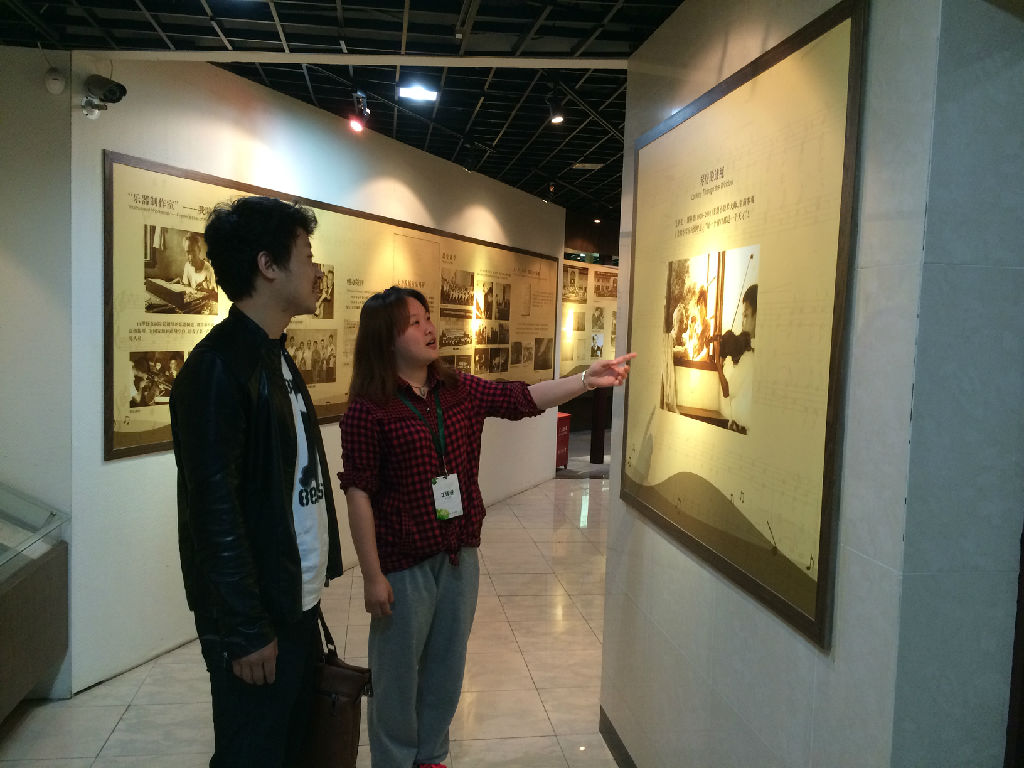 图7志愿者罗森(声乐系,2014级)提供校史讲解