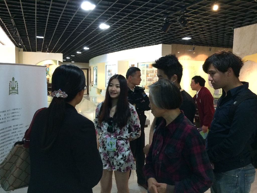 图8 志愿者郭茹心(音乐学系,2012级)提供校史讲解与咨询服务