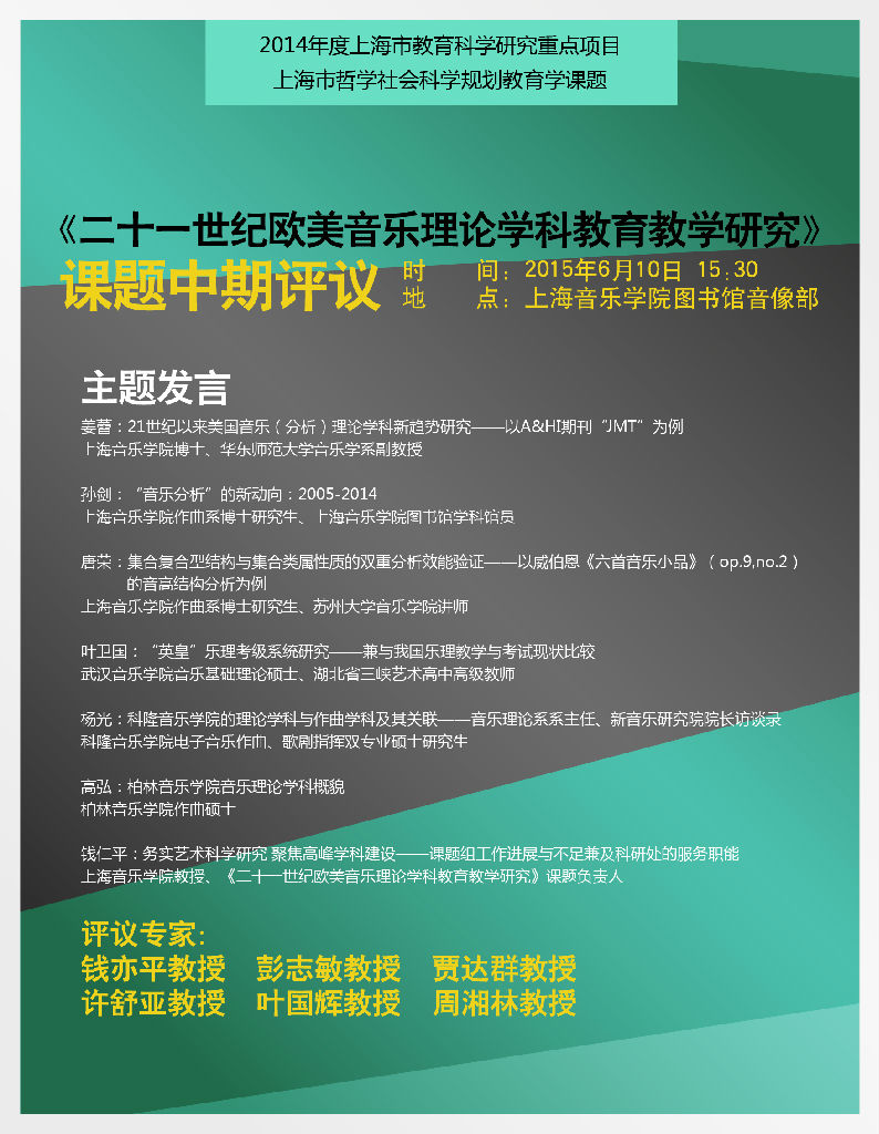 《二十一世纪欧美音乐理论学科教育教学研究》课题中期评议预告