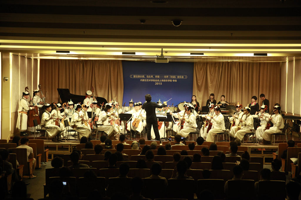 6月5日晚,北楼报告厅内济济一堂,来自各系的师生都迫不及待地想一睹来自内蒙古艺术学院的“NMY马头琴乐团”和“天籁组合”带来的蒙古长调与呼麦表演。