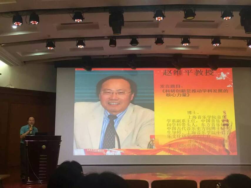 音乐学系副主任赵维平教授,以《科研创新是推动学科发展的核心力量》为题发言。通过阐述自己长期在日本留学、生活的亲身经历,提点出中国学生普遍缺乏创新精神的现实。并对在座的同学提出了两点建议,包括需要对自己的专业有浓厚的兴趣,以及应培养更为主动、独立、积极的学习习惯和人生观。