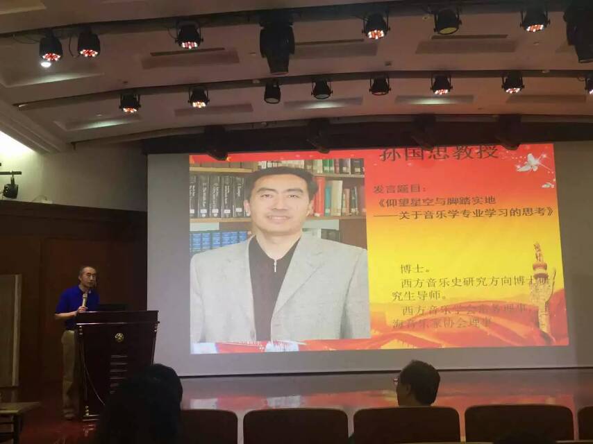 音乐学系孙国忠教授的发言题目是《仰望星空并脚踏实地——关于音乐学专业学习的思考》》。表达从自己在日常教学工作的见闻,发现了一些不良的学习风度和态度,指出作为学生一定要踏实认真地完成个人的学习任务,并从正反的例证说明无论将来从事什么工作,良好的学习态度和扎实的专业知识都将成为今后工作中的宝贵财富。
