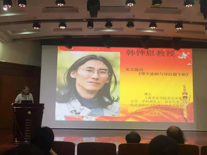 音乐学系系主任韩锺恩教授,发言主题为《带不走的与可以留下的》。韩教授从自己的学习经历和学术生涯展开,围绕“敬业”的主题表达了自己作为一名高校教师、专家学者和知识分子的理解与思考,包括如何通过教学编织有学术渊源的学缘;如何通过研究构筑有学科谱系的学统,如何通过灵修成就有学人风范的学格。进而提炼出3种精神:精心制作并无尽唯美的贵族精神;守望并诗意作业再坦然等待学生超越的无我精神;背负学科十字架并不断坚固自信的奉献精神。
