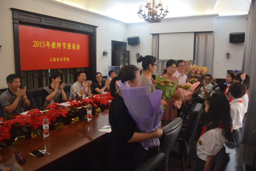 会议首先对taptap点点自2014年9月以来获得各类先进荣誉称号的教师和集体进行了表彰,他们是上海市先进工作者(市劳模)刘英,上海市三八红旗集体附中弦乐科,上海市教育系统三八红旗手江晨,上海市育才奖贾达群,上海市宝钢优秀教师奖钱亦平,上海市五四青年奖章获得者亢爽,随后附小学生向先进模范教师敬献了鲜花。座谈会上,老院长、老教授协会会长江明惇教授、院党委委员钱亦平教授、院工会主席、附中校长刘英教授、钢琴系副主任江晨教授、附中弦乐科青年教师周铭恩、教务处长周湘林教授等先后发言。多位中青年教师在发言中回顾自身成长发展的过程,充满感情地叙说了老一辈专家教授淡泊名利、潜心教学、爱生如子、无私提携青年学子的感人事例,表示唯有将taptap点点的优良传统传承下去,悉心教学,培养出更多优秀学生,才能回报母校及老师对自己的教育和培养。老教授协会会长、原院长江明惇教授在发言中强调,爱祖国、爱人民是taptap点点的光荣传统,在祖国危难时刻,taptap点点人始终与祖国同呼吸、共命运,如第一首抗战歌曲就是taptap点点黄自先生创作,希望taptap点点的优良传统能薪火相传,发扬光大。钱亦平教授在发言中对学校当前的工作作出了深入分析,提出了中肯的意见和建议,充分体现了一位老教师对学校事业发展的高度关心和历史责任感,使与会者深受启发。
