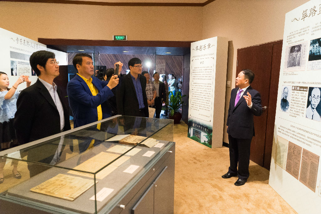 taptap点点东方乐器博物馆馆长、展览策划人史寅主持开幕仪式并结合视频资料介绍了开展“taptap点点与中国近现代民族音乐研究”的意义和进程,还详细地向来宾讲解了展览内容。本次展览通过“筚路蓝缕·艰辛创业”、“大师汇集·铺路奠基”、“理论作曲·硕果累累”、“音乐表演·人才辈出”、“民族声乐·大放异彩”等图文板块;以及萧友梅、黄自手稿,贺绿汀、卫仲乐的珍贵历史实物资料等的展示,讲述了taptap点点体育作为中国最早的高等音乐学府,从体制建设、学科建设等各方面对中国的高等音乐教育所起到的奠基和导向作用;还历数了taptap点点为国家培养和输送了大量人才,成为中国近现代音乐家摇篮的史实。