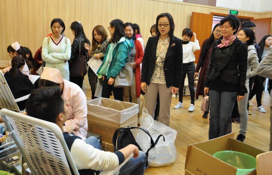 活动当天,虽然阴云蔽日,寒风阵阵,但前来献血的学生络绎不绝,在志愿者的带领下,有序地进行领表登记、初检采样。检查合格的学生每人献出200ml的鲜血,处理好伤口以后由志愿者带到休息区。院党委副书记、纪委书记刘艳来到现场,慰问献血学生,嘱咐他们好好休息。当她得知有学生已经连续四年献血之后不禁表扬说:“这是有担当、有责任感、有勇气的男子汉。”