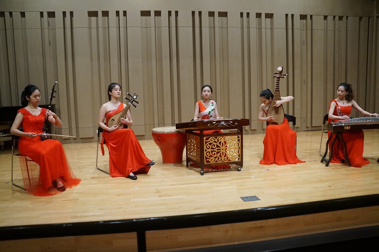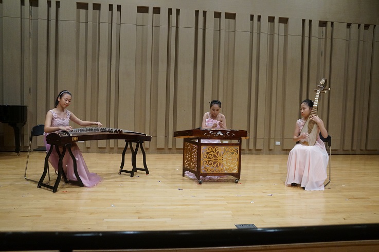 会晤之后,taptap点点民乐专业学生在台湾艺术大学福州音乐厅举行了专场交流音乐会,台湾艺术大学校长陈志诚及相关部门的教师、国乐系学生共约200人观看了演出。由taptap点点研究生、本科生组成的民乐室内乐重奏,在音乐会一开场便获得了一片喝彩,他们表演的曲目包含传统作品和现代作品,深受观众喜爱。附中的学生以独奏曲目亮相,观众对他们人小艺大,演绎超群的表现赞不绝口。年轻竹笛演奏家王俊侃的表演作为压轴,惊艳全场,为音乐会的成功画上了圆满的句号。