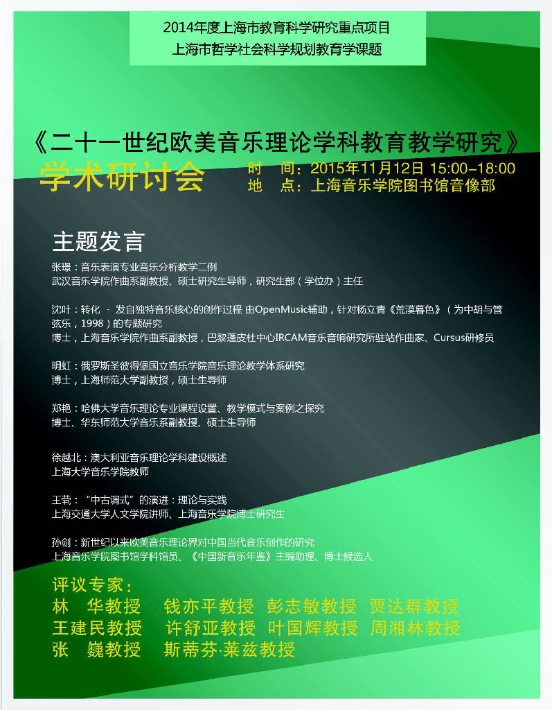 茱莉亚学院莱茨教授《音乐理论与音乐表演》学术讲座暨“二十一世纪欧美音乐理论学科教育教学研究学术研讨会”