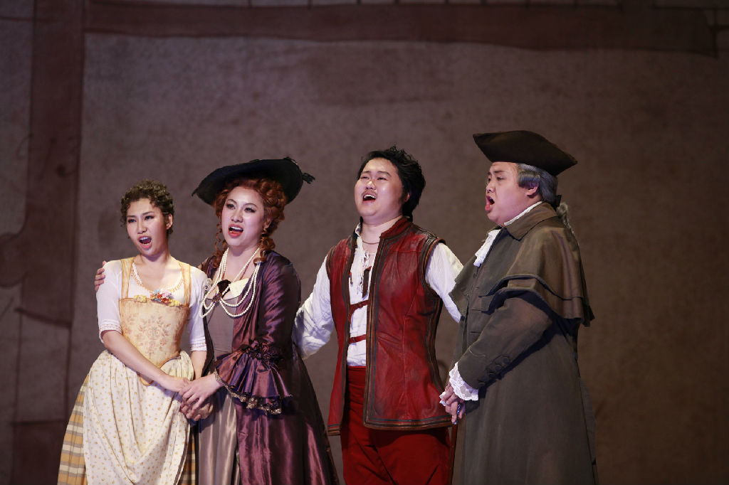 从11月4日开始,意大利导演甘迪尼先生、指挥张诚杰先生、钢琴伴奏冯佳音老师和吴笛老师,以及合唱指挥王瑾老师、合唱伴奏米丹老师、舞蹈指导詹积民老师等开始了各自负责的分项目排练,分别从意大利语台词唱词的发音、语气节奏、舞台上的走位、歌唱中的肢体动作、着装造型、面部表情等方面,对主角和群众演员做进一步细致而又严格的训练,力求在演出的每一个环节上精益求精。在这么多位专家的指导下,我们的同学在语言、表演、音乐等方面都得到了很大的提高,很多同学表示仅仅参加歌剧的排练,就让他们迅速理解并很快学会了很多东西,而这些排练经验都会成为他们今后工作中的宝贵经验,他们自身得到了极大地锻炼和提升。