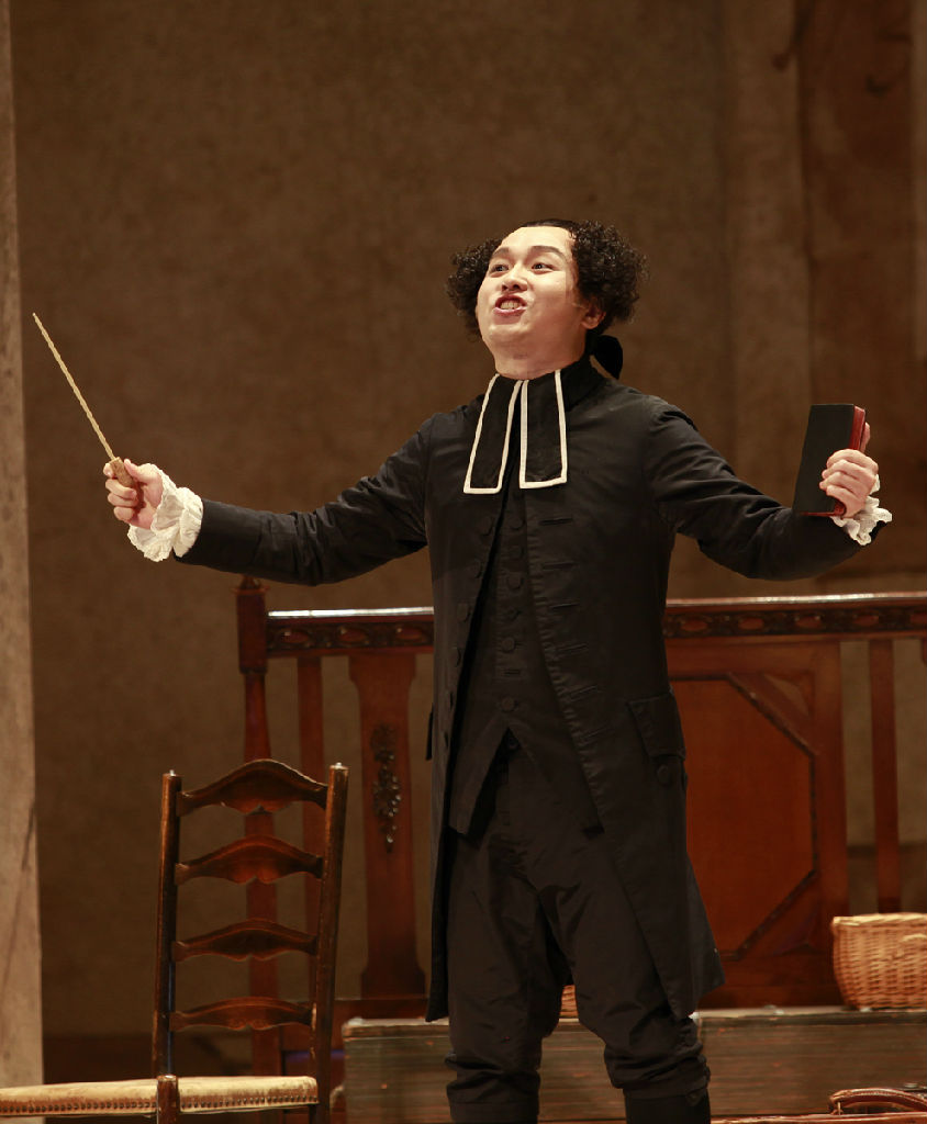 整场演出的另一大亮点,就是那些重唱部分。它将舞台上几个心思截然不同的人物和他们个性鲜明的曲调有机的融为一体。既使得剧情发展非常紧凑,又加速了戏剧发展的节奏,音乐就像涓涓溪水时而平行时而交汇,共同承载和推动着情节的发展。同时,它们还朗朗上口,有些熟悉曲调的观众在观看时,也会不由自主地哼唱起来。