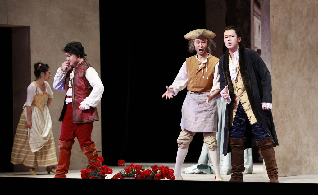 今年上半年,我系接到与日本昭和音乐大学合作排演歌剧《费加罗的婚礼》的任务后,成立《费加罗的婚礼》剧组,并挑选好角色演员。师生们放弃了暑假休息时间,在一起集中培训。先后接受了意大利语正音指导保罗·贝尔纳迪教授和意大利声乐指导翁贝特·菲纳兹教授的集中授课和指导。9月8日,新学期伊始,《费加罗的婚礼》剧组一行13名师生飞抵日本,入驻昭和音乐大学,汇同意大利导演马尔克·甘迪尼先生以及日本演职员一起开始了为期一个月的交流、排演歌剧的活动。