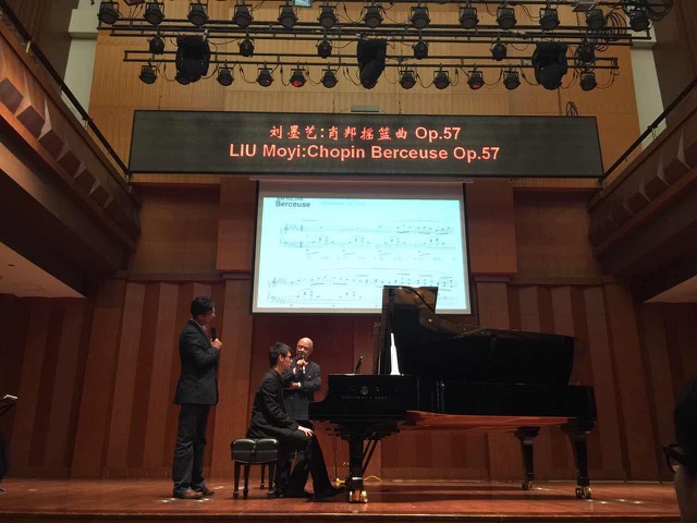 接着由周士深同学演奏肖邦三首玛祖卡舞曲op.59.。大师上课十分投入,也不失风趣。强调了舞曲的节奏,并说要有丰富的想象力,对一些表情记号要求也是极为认真仔细。在音乐层次方面也是讲解了很多内容,并在一些音上反复研究。