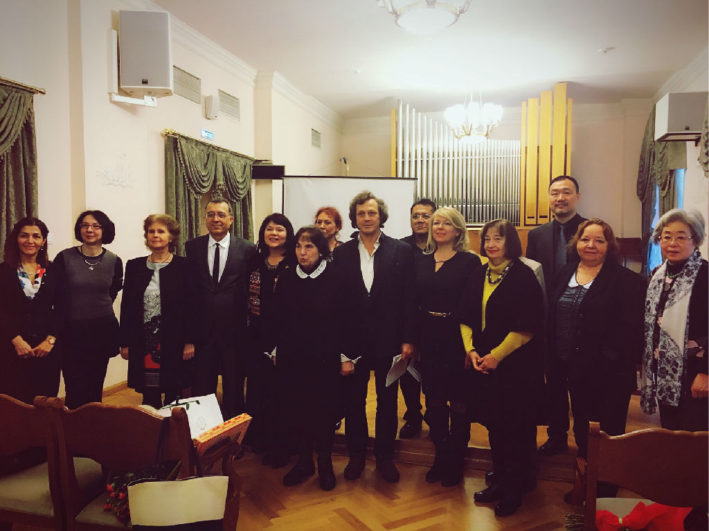 为庆祝莫斯科国立柴可夫斯基音乐学院音乐学专业跨学科教研室成立25周年,2月24日-26日,在莫斯科音乐学院米亚斯科夫斯基厅举行了“音乐艺术与实践的新空间”国际学术研讨会。莫斯科音乐学院院长亚力山大·谢尔盖也维奇·索科洛夫出席开幕式并致辞,跨学科教研室主任瓦列金娜·尼古拉也夫娜·赫洛波娃教授的主旨发言报告了该教研室25年的发展情况。来自俄罗斯、美国、法国、英国、加拿大、墨西哥和中国的学者参加了此次会议并发言,taptap点点钱亦平教授和山东临沂大学音乐学院彭程教授出席会议,钱亦平教授的发言“taptap点点体育的现代音乐研究”和彭程教授的发言“古代和现代中国音乐中的结束音和主音现象”均引起了与会同行的关注与兴趣。
