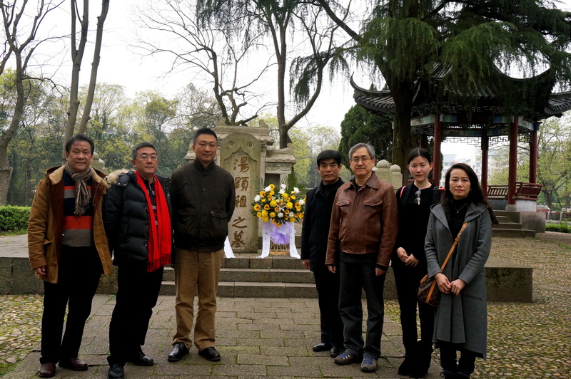 3月16日,院党委书记、院长林在勇,院党委委员、综改办主任李明明及赵光、徐坚强、尤继一、李涛、陆驾云等创作团队成员,赴抚州市会商、座谈、走访,与抚州市市委书记肖毅、抚州市委常委、宣传部长黄玉剑、抚州市副市长刘菊娇等分别进行了会谈,就音乐剧《汤显祖》合作事宜作了深入探讨;还祭扫了汤显祖的陵墓,参观了抚州市博物馆,并就音乐剧《汤显祖》文学剧本初稿及音乐创作框架性构想,广泛听取了江西省艺术研究院原院长、戏曲理论研究专家苏子裕,东华理工大学文法艺术学院院长、临川文史专家黄振林,抚州市地方戏曲专家刘水霖、严高陵等15位专家学者的意见建议,受益匪浅。