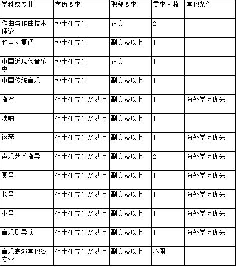 1、从事相关专业教学或者主要演奏员经历5年以上,国际国内重大音乐比赛获奖者优先。