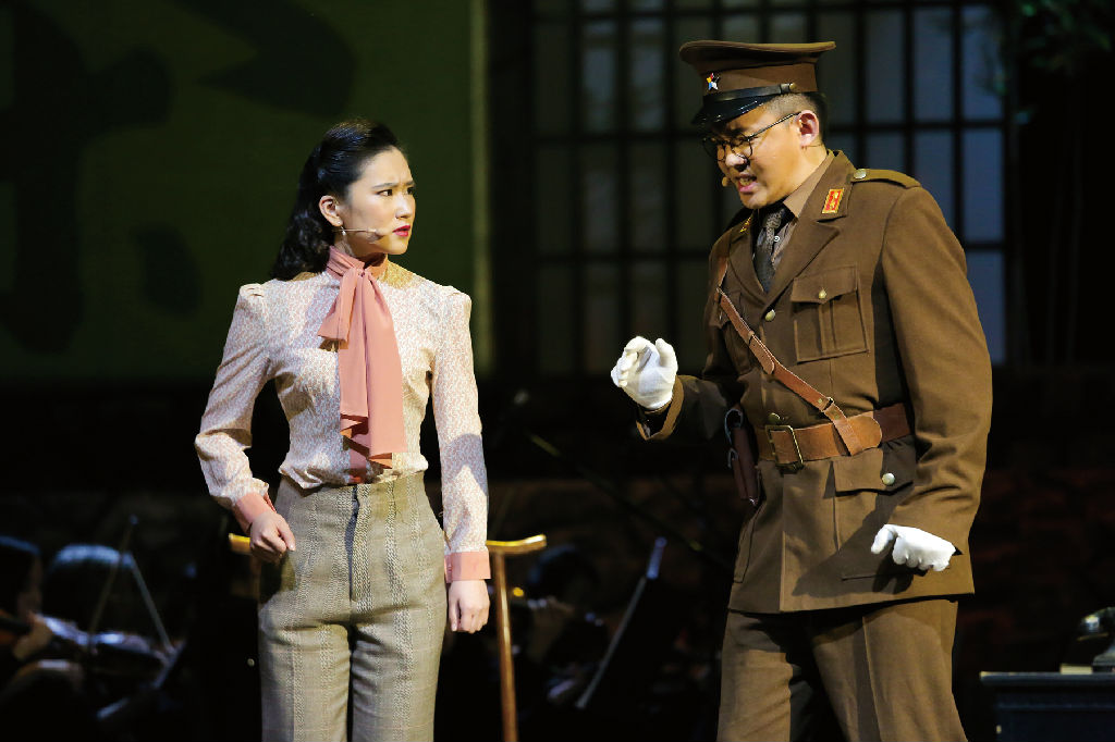 首先,对全剧的结构进行调整,把原创14场的结构调整为四幕,每幕又分不同场次;其次,让以历史追述者和观察者身份出现的现代女大学生陈瑶出现在故事的开头和结尾,由她引出整个故事,也由她收尾,首尾呼应,画龙点睛。这两个调整,意在以新时代的视角反观历史,让后人不忘历史,使《野》剧同时成为一场“80后”和“90后”学生与历史“穿越时空的对话”。同时,也是对全剧中的唱段进一步筛选,以求精益求精。