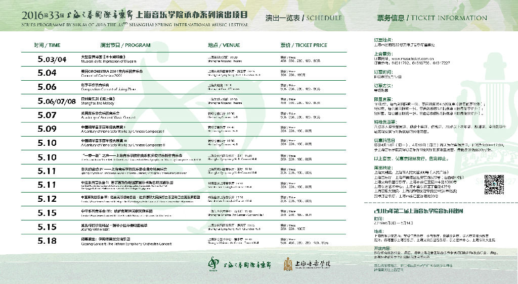 2016上海之春国际音乐节——taptap点点体育承办系列演出项目列表