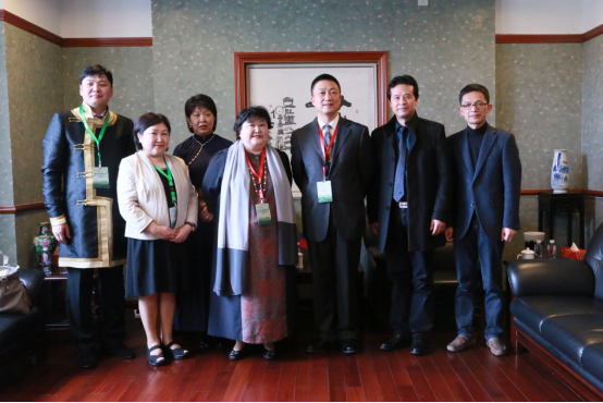 林在勇会见蒙古国立艺术与文化大学校长素宁陶格斯·额尔登朝格图(Sonintogos Erdenetsogt)、音乐学院院长冈茨赛格·詹登(Gantsetseg Genden)