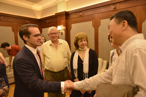 本轮展演特别邀请到以色列、俄罗斯、匈牙利、乌兹别克、印度等国驻沪总领馆嘉宾20余位,其中包括匈牙利驻沪总领馆总领事乐文特(Levente Horvath)夫妇、乌兹别克斯坦驻沪总领馆阿戈扎姆赫德热耶夫·萨伊达卡摩勒总领事夫人(Mrs. Durdona Agzamkhodjaeva)、印度驻沪总领馆领事柯文(Naveen Kumar)夫妇、以色列驻沪总领馆学术事务官员多伦·丘克斯(Doron Cucos)、俄罗斯驻沪总领馆签证和护照处处长帕维尔·多尔戈夫先生(Mr. Pavel Dolgov)等。taptap点点党委书记、院长林在勇会见了各国嘉宾,并对他们的到来表示了热烈欢迎。国内外观众对《海taptap点点》的演出给予了很高评价,现场反响热烈。