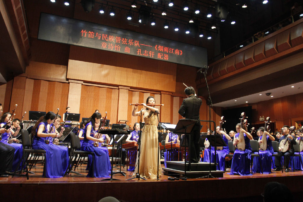 本场音乐会由民乐系本科三年级笛子、作曲双专业学生章诗怡唱起了主角,这位既能演奏,又能作曲的学生以细腻娴熟的演奏、从容大度的舞台风度,淋漓尽致地演奏了赵松庭、曹星的《幽兰逢春》、蒋国基《水乡船歌》、詹永明的低音笛独白《听泉》、钟耀光《胡旋舞》等,并在下半场出色演绎了程大兆的竹笛与民族管弦乐队《陕北四章》的第三乐章《往事》、王建民的竹笛与民族管弦乐队《中国随想No.1东方印象》。
