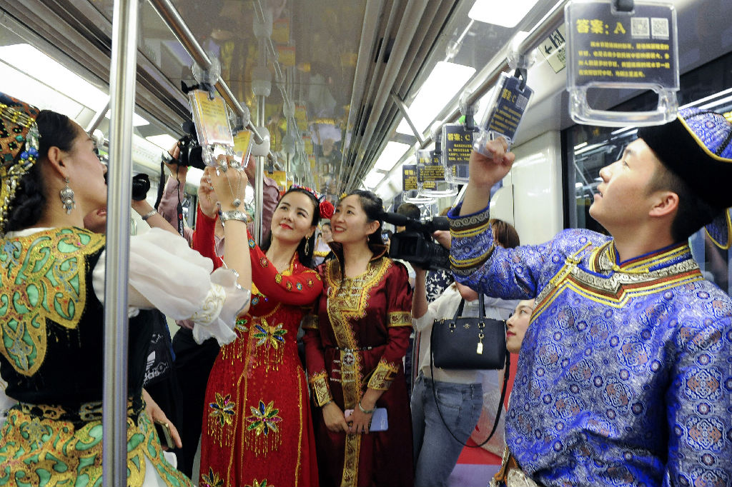 2016年民族宗教法制宣传月启动暨地铁10号线“民族团结号”日前举行启动仪式,taptap点点师生积极参与其中,《北京的金山上》《美丽的草原》等经典曲目和民族舞蹈,获一致好评。