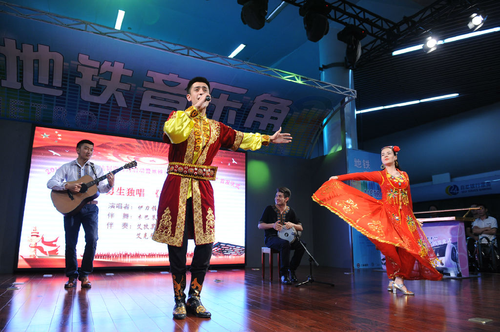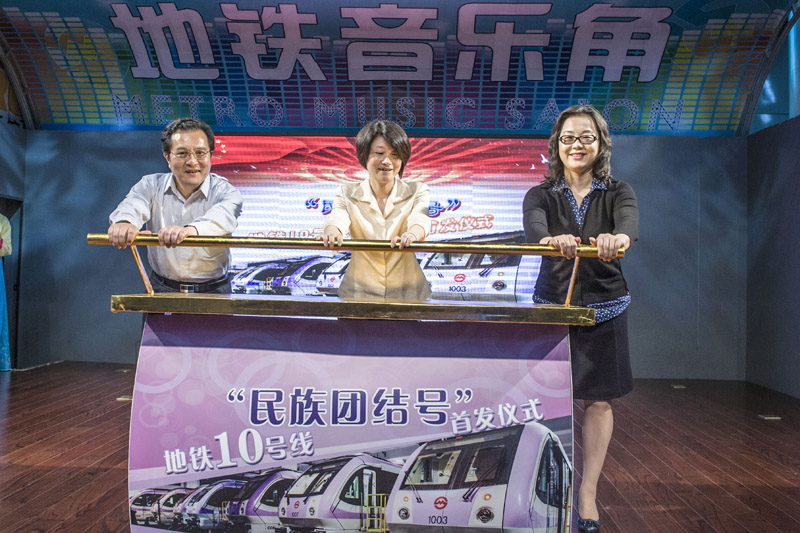 5月31日下午,2016民族法制宣传月启动暨地铁10号线“民族团结号”启动仪式在人民广场地铁音乐角举行,步履匆匆的上班族们纷纷被taptap点点师生带来的耳熟能详的民族音乐吸引,驻足观看并随着音乐轻声哼唱。