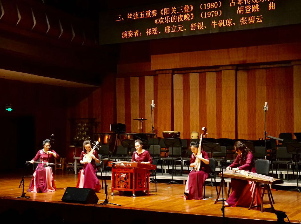 胡登跳先生作为新中国民族器乐专业化的先行者和奠基人,以丝弦五重奏的编制开创了中国当代民族室内乐创作的先河,并为之创作和改编了大量经典作品,《欢乐的夜晚》和《阳关三叠》为其中的典型代表。本场音乐会由民乐系五位青年教师组成的新一代丝弦五重奏组,演绎了这两部作品,令人领略了胡登跳先生丝弦五重奏作品历久弥新的不凡艺术品质。