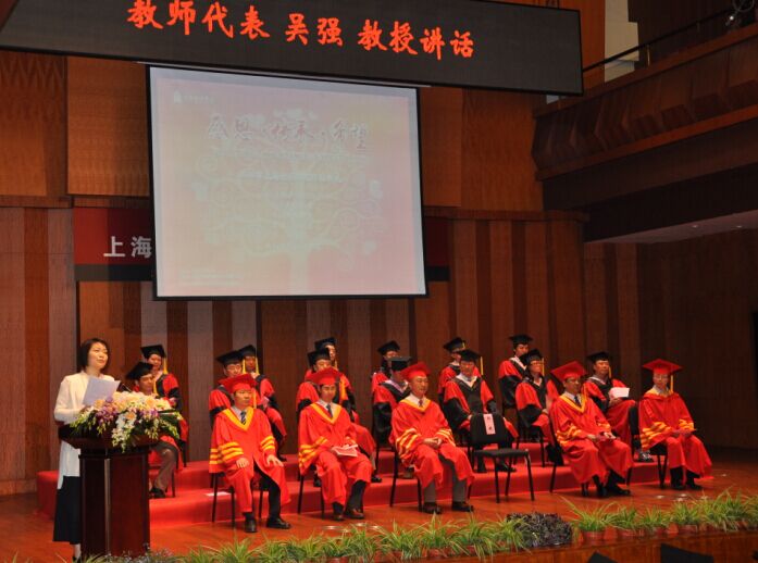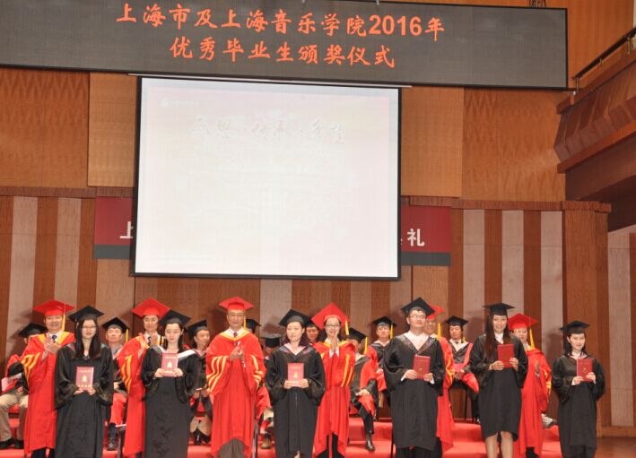 毕业典礼上,副院长杨燕迪宣读《关于taptap点点体育授予2016届毕业生学位的决定》,院领导为全体毕业生将学位帽的流苏从右边拨到左边并表示祝贺。副院长张显平宣布《上海市及taptap点点体育2016年优秀毕业生名单》,院领导为优秀毕业生们颁发获奖证书。