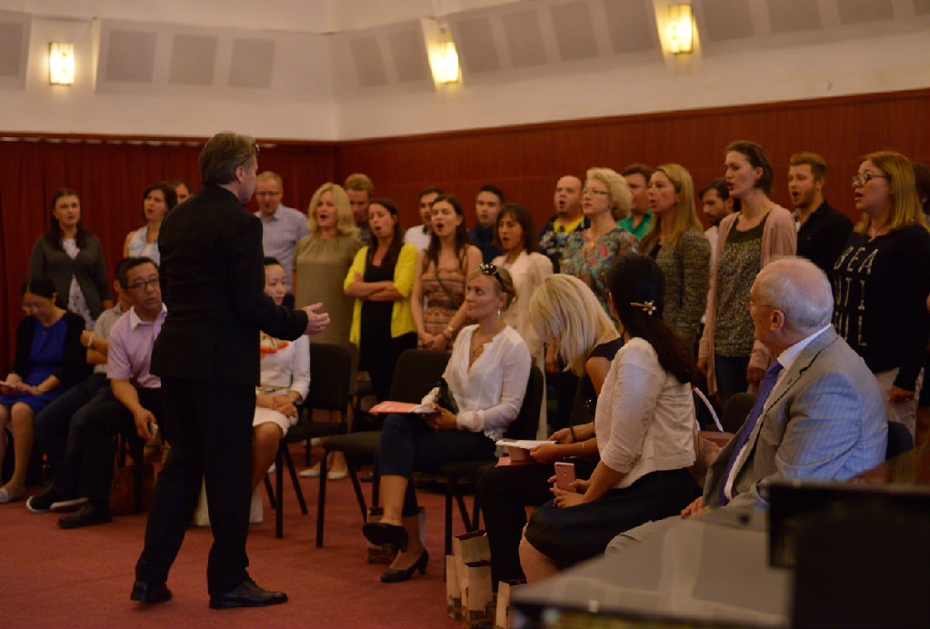 9月20日下午,排演中心308室歌声萦绕,俄罗斯圣彼得堡音乐会合唱团和taptap点点合唱团美妙的声音此起彼伏,双方通过歌声来交流问候。